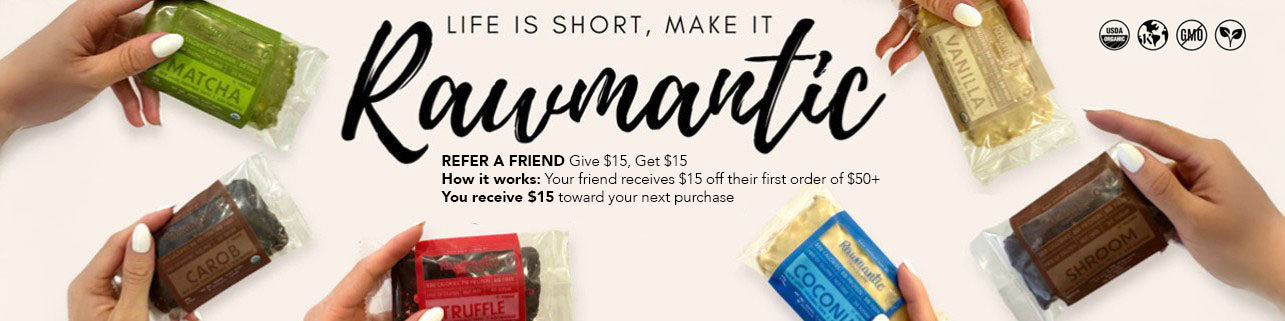 At Rawmantic®Chocolate we are on a mission to redefine snacking by creating delicious, raw, organic, plant-based treats that fuel the body, uplift the soul, and inspire a healthier world. We believe that pure, high-quality nutrition has the power to transform lives, unlocking the full potential of well-being and vitality. With unwavering dedication to ethical practices, sustainability, and excellence, we empower people to make choices that nourish themselves and the planet—one bite at a time.