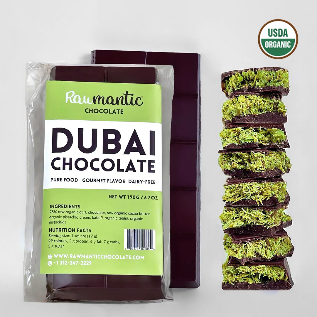We are the only brand in the world to make Dubai Chocolate in a vegan, organic, and plant-based version, combining exotic flavors with premium clean ingredients.