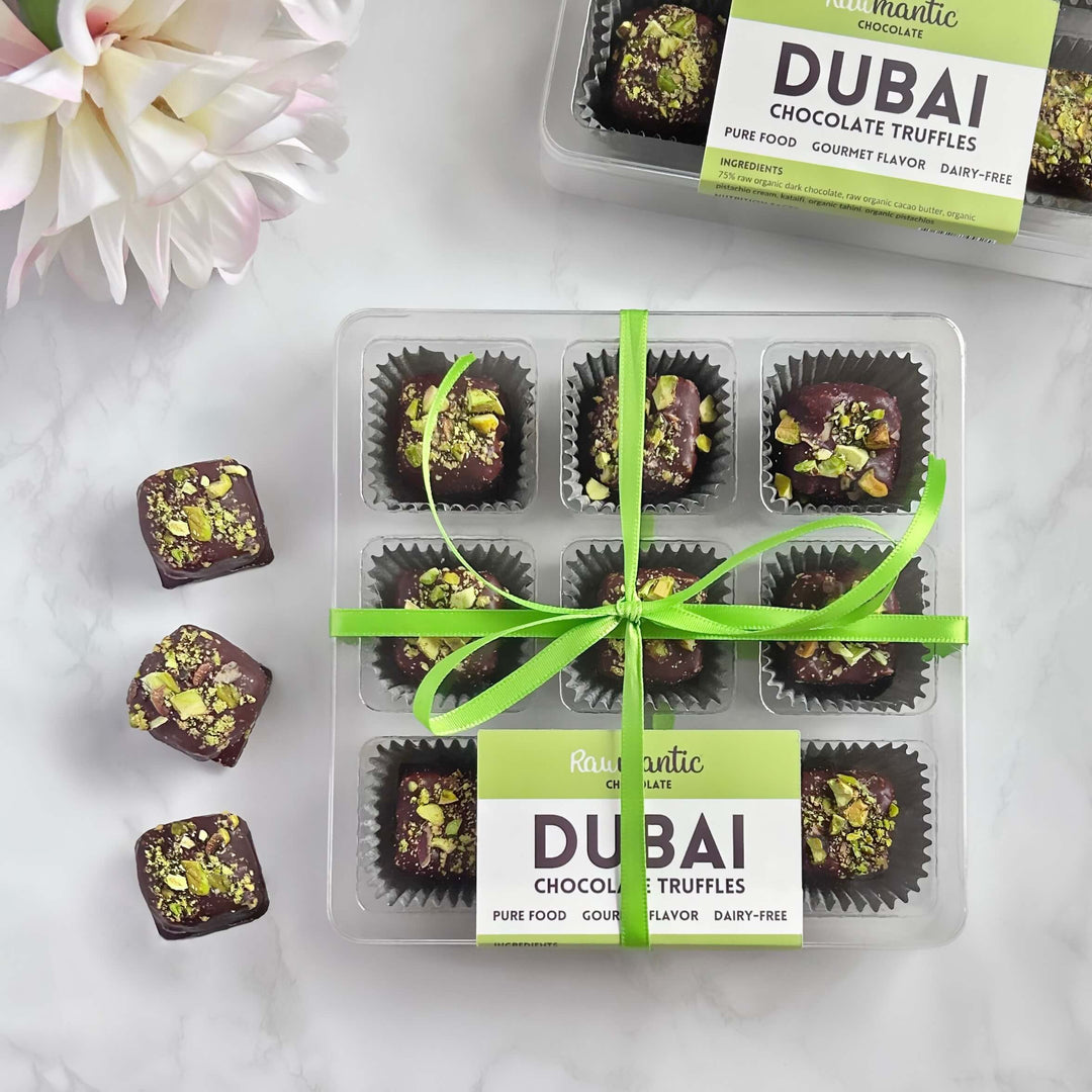 Dubai Chocolate is Rawmantic®Chocolate's signature creation — a luxurious, plant-based chocolate inspired by the elegance and opulence of Dubai.